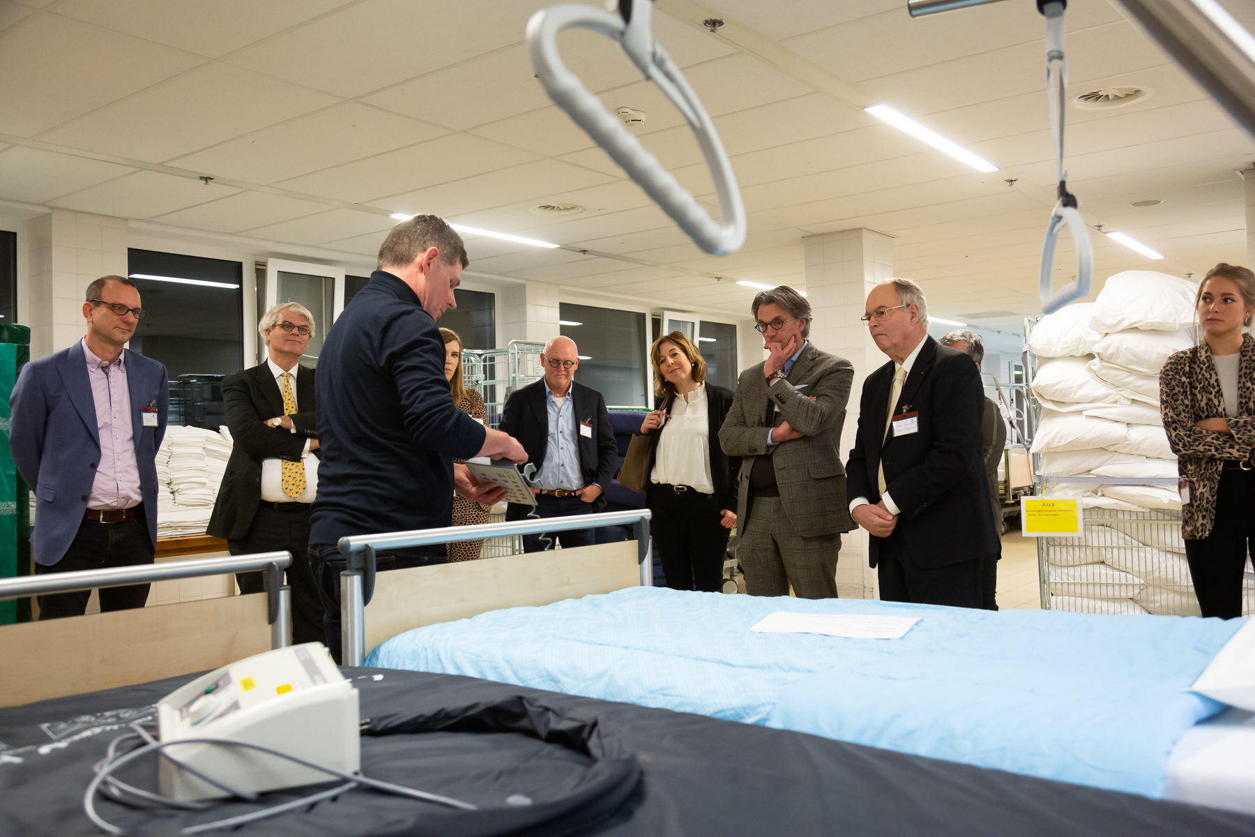 Welkom op de belangrijkst afdeling van het ziekenhuis!, klinkt het enthousiast op de 15e verdieping. Tussen de 80 en 120 bedden per dag gaan hier elke dag door de wasstraat met een temperatuur van 70 graden. Matrassen worden in een matrassenreiniger geplaatst. Simple as that, zou je zeggen. Maar het wassen van bedden levert de nodige discussie op. Want wat is hygiënischer en efficiënter? Elke dag al die bedden via de ziekenhuishallen - met alle besmettingsgevaar van dien - naar boven rollen? Of de boel ter plekke met de hand op de kamer reinigen zoals ze in Sittard doen? Vast staat dat er voor beide methoden duidelijke, strenge regels gelden.